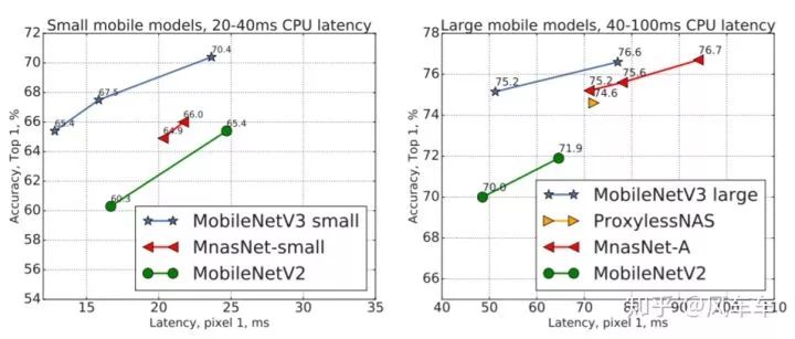 Google后来结合了上面这两项工作,推出了Searching for MobileNetV3[ICCV'19,https//arxiv.org/abs/1905.02244],把MnasNet魔改的MobileNetV2再用NetAdapt做微调,然后加了一些工程技巧,得到了最后的MobileNetV3。