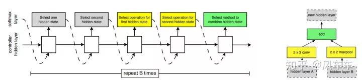 ENAS提出了两种模式(这里只介绍CNN),一种是搜整个网络结构,一种是搜个cell然后按照之前的方式堆起来,在搜索cell的时候只需要一张卡跑半天就能跑完。不过最近ICLR'20的投稿中对于weight sharing有很多不同的声音,有兴趣的可以去openreview看一看。