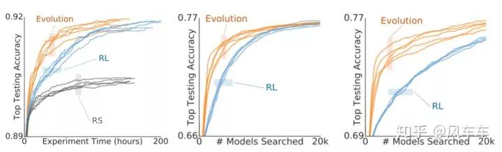之后大佬们可能觉得现在的token都定长了,或许RNN+policy gradient的优化方式可以换成一些其他的算法(也可能是觉得强化学习调参太tm蛋疼了),于是Google又出来一篇Regularized Evolution for Image Classifier Architecture Search[AAAI'19,https//arxiv.org/abs/1802.01548],搜索空间沿用上面的NASNet Search Space,只是将优化算法换成了regularized evolution(具体算法还是看paper吧...写出来感觉内容太多了(其实就是懒)),搜到的结构叫做AmoebaNet。实验表明确实evolution更加好使,收敛快,效果好,调参还没那么蛋疼。