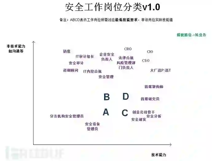 其实本不想提职业路线这一块的,首先是自身经验远不如10年从业经验的“妖孽”,其次是安全行业每个人都像是一个流派,回到之前那句话“不管黑猫白猫,只要能抓到老鼠的猫就是好猫”,不管剑宗,气宗,能够保护网络安全的就是好的路线;