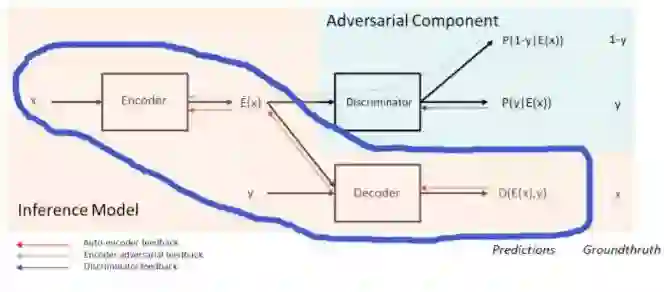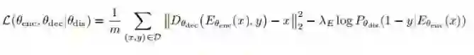 θdis和θenc分别表示判别器网络和encoder网络的参数, 判别器的能力是最大程度地区分y是不是和E(x)有关系.