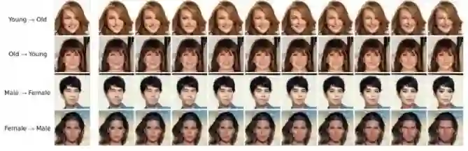 今年Facebook在NIPS2017上发表的Fader Networks(渐变网络)更近一步,对于更抽象的特征也可以进行条件生成: