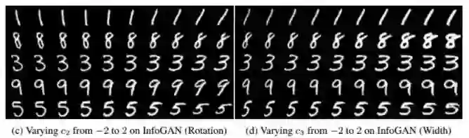 我们在GAN大盘点中聊过infoGAN吗,通过控制隐信息c可以生成特定条件的图像(倾斜更高,宽度更大):