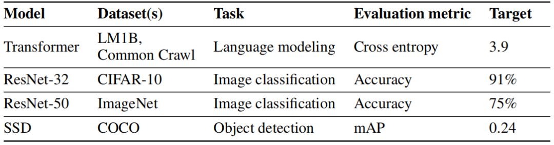 作者在两个语言建模任务、两个图像分类任务和一个目标检测任务上验证了数据回送的效果。对于语言建模任务,作者在 LM1B 和 Common Crawl 数据集上训练了 Transformer 模型。对于图像分类任务,作者在 CIFAR-10 数据集上训练了 ResNet-32 模型,在 ImageNet 数据集上训练了 ResNet-50 模型。对于目标检测任务,作者在 COCO 数据集上训练了 SSD 模型。