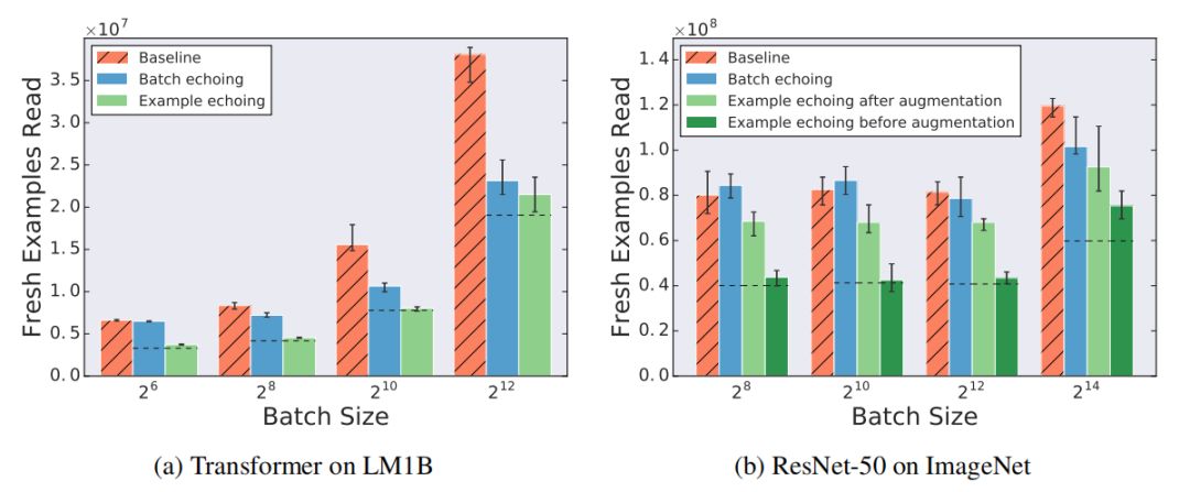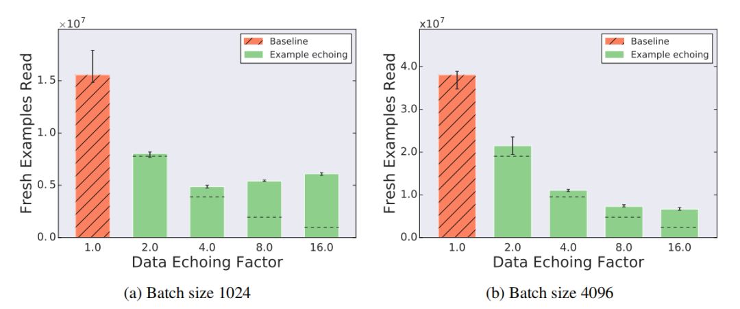 批处理前或批处理后的回送: 批处理前的回送是指数据在样本级别而不是批级别进行重复。这样增加了相邻批次不同的可能性,但代价是不能复制一批内的样本。批处理前回送的算法称为 样本回送(example echoing),批处理后回送的算法称为 批回送(batch echoing)。