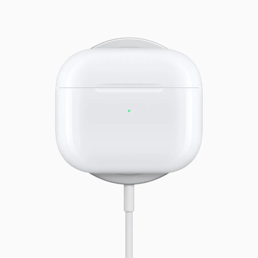 AirPods(第三代)提供更长的电池续航时间,聆听时间最长可达 6 小时,通话时间最长可达 4 小时。仅需充电 5 分钟,便可为 AirPods 提供大约 1 小时的续航,充电盒又可另外提供 4 次充电,让用户总共可获得最长可达 30 小时的聆听时间。AirPods 现在也是 MagSafe 生态系统的一部分,支持更方便的无线充电。