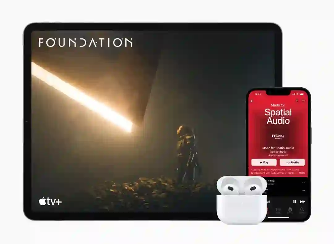 苹果今天宣布推出第三代 AirPods,呈现全新轮廓设计,支持空间音频,带来各项先进的功能。