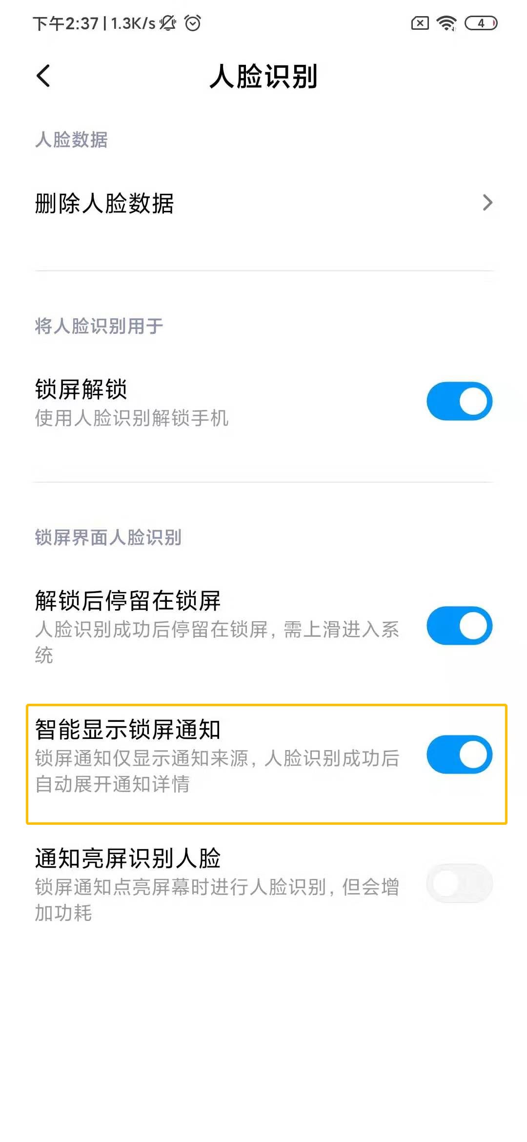 MIUI 11 里新增了一个“智能显示锁屏通知”的功能。啥意思呢?就是只有识别出我本人后,才会显示具体消息。