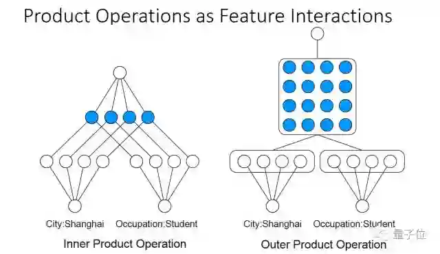 PNN按product层的功能分为inner product layer和outer product layer,区别如下: