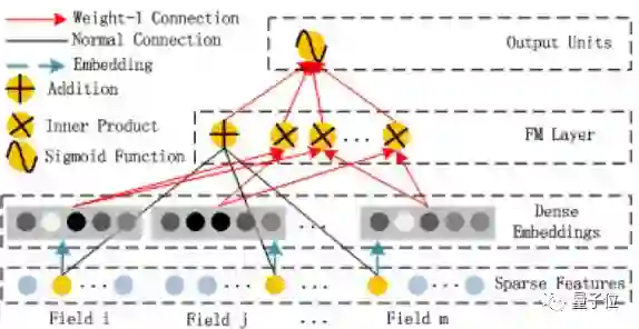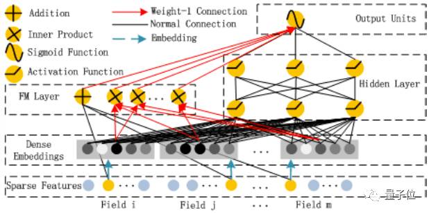 其实FM的部分感觉就是PNN的一次描述,这里只描述下结构图,PNN的部分前面都描述, FM部分: