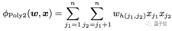 因此,必须复杂到能够建模非线性关系才能够比较准确地建模复杂的内在关系,而PLOY2就是通过特征的二项式组合来建模这类特征的复杂的内在关系,二项式部分如下图公式: