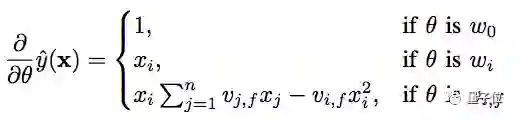 将复杂度简化为$O(kn)$ 然后就是SGD来更新模型参数,使模型收敛(这里还有很多其他替代SGD的方法,在FFM中有提到):