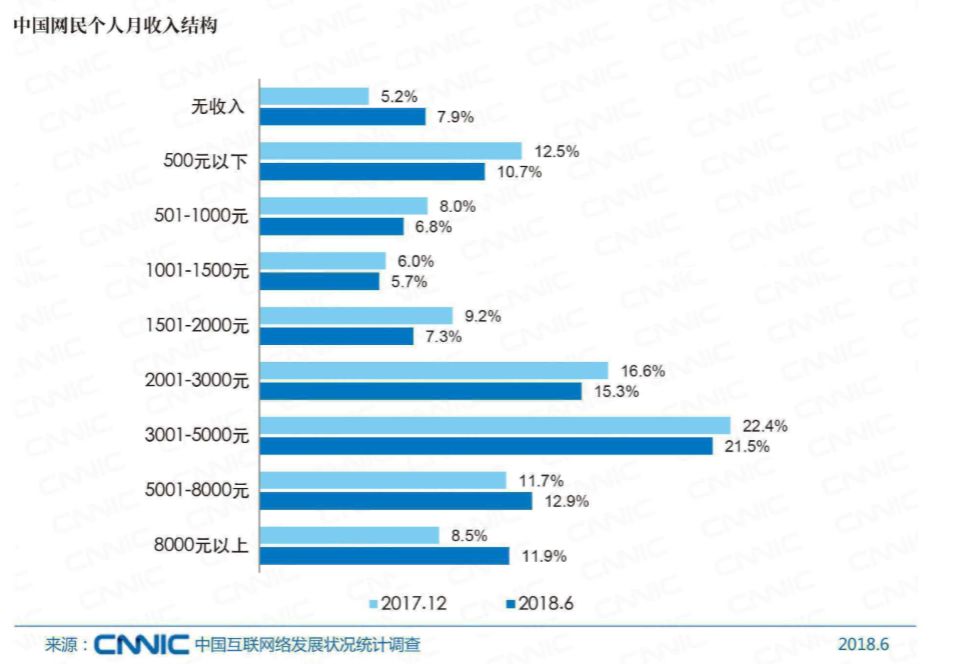 根据《报告》,月收入在5000元以上的网民仅占24.8%,也就是说,大部分网民的经济水平并不高,所以在这种情况下,比起质量,便宜更加重要。要维持生活但又要控制花销,“砍一刀”就能便宜很多的拼多多,自然成了许多网民网上购物的选择。
