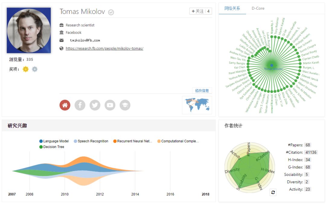 Tomas Mikolov曾在谷歌工作,目前是Facebook人工智能研究实验室的科学家。他也是一位产出多篇高质量paper的学者,从RNNLM、Word2Vec再到最近流行的FastText都与他息息相关。