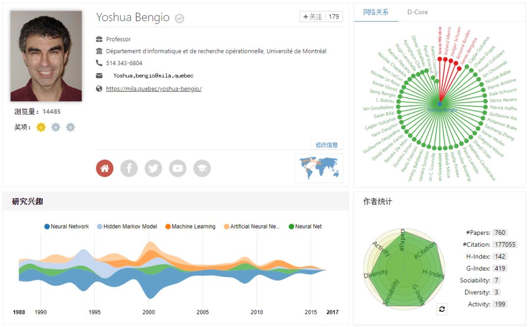 排在榜单第四位的是“人工智能三巨头”之一的Yoshua Bengio,他同Geoffrey Hinton、Yann LeCun同获2018年图灵奖。