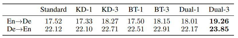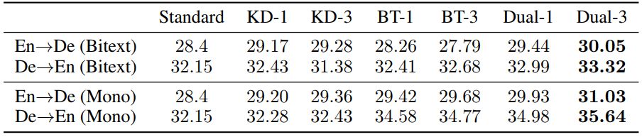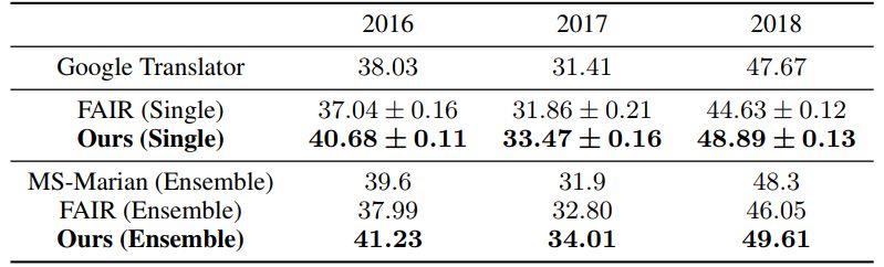 其中,在WMT2014上,仅利用有标数据和增加无标数据的两个场景中,我们取得了相同环境配置下的最好性能;在WMT2016无监督翻译任务上,我们在英德/德英方向分别达到19.26/23.85 BLEU,超越了之前所有纯NMT系统。