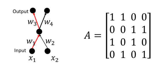 然而,神经网络所有路径值是相关联的(如下图),这意味着所有路径的值不能作为独立的变量进行优化。为了找到一组互不相关的路径,我们用向量来表达路径: