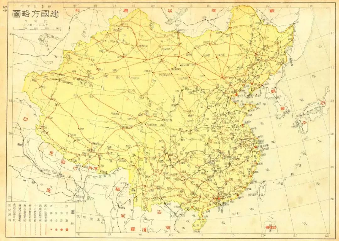 国家走向共和之后,中国交通史迎来了一位特殊的人物:孙中山。1912年,卸任大总统的孙中山计划在10年内修10万英里铁路,简直牛到没朋友。著名记者Donald Henry曾对造路计划做过专访,在孙向他展示了一张“连连看”式的铁路规划图后,评价道:“丝毫不讲实际,缺乏普通常识。”最后自然一寸铁路也没造出来。