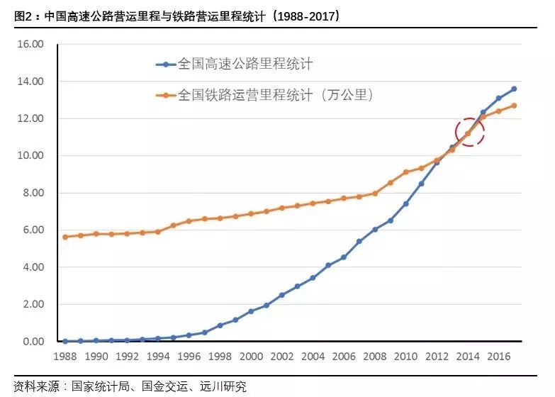 90年代前后,地方政府发现修建收费的高速公路,比向国家要政策要资金修铁路要简单的多,即使一段两公里的公路,两头一堵就能收钱。由于对GDP拉动作用巨大,筹资问题有可以有效解决,高速公路便成为地方政府的宠儿,建设不断加速,营运里程在2012年一举超越铁路。
