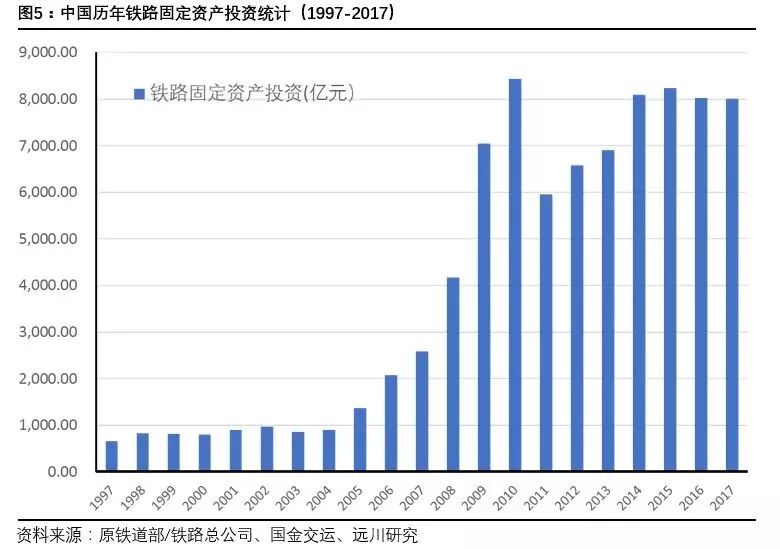 在京津高铁开通的5年前,铁路部迎来了新部长。一年之后,振奋整个铁路行业的《中长期铁路网规划》出台,中国铁路“跨越式”发展的“四颗龙珠”开始被逐渐集齐。例如,03年之后铁路建设者们遇到了GDP连续两位数增长的时代,中央政府投资意愿和能力大幅提升,铁路系统在09年四万亿中更是获得巨资支持。