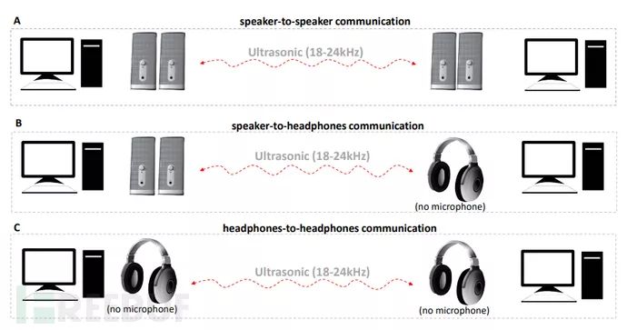 研究人员在这份标题为《Mosquito攻击:空气间隙计算机之间的隐蔽通信》的研究报告中解释称,这种攻击方法的隐蔽性非常高,它可以通过扬声器的超声波信号来发送和接收数据。这项技术可以将音频输出插孔转换成输入插孔,然后再将扬声器转换为麦克风。这是现代音频芯片组的一种功能,也可以说是一种特性,并且可以通过软件来实现转换。但是,攻击者也可以通过特殊制作的恶意软件来利用这种功能,然后将目标主机的扬声器或耳机转换成麦克风,并通过超声波信号完成两台计算机设备之间的数据提取(最远距离为9米左右)。