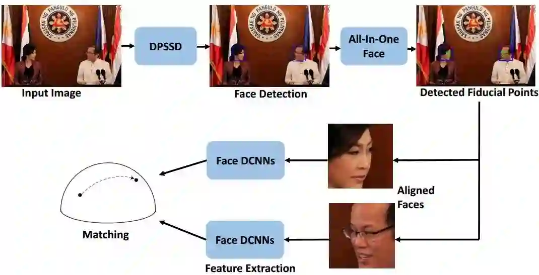下图给出了新框架流水线的概述。接下来我们首先介绍了提出的DPSSD人脸检测器。然后,简要总结了人脸对齐方法使用单独MTL方法。最后描述了提取身份特征并将其用于人脸识别和验证的方法。