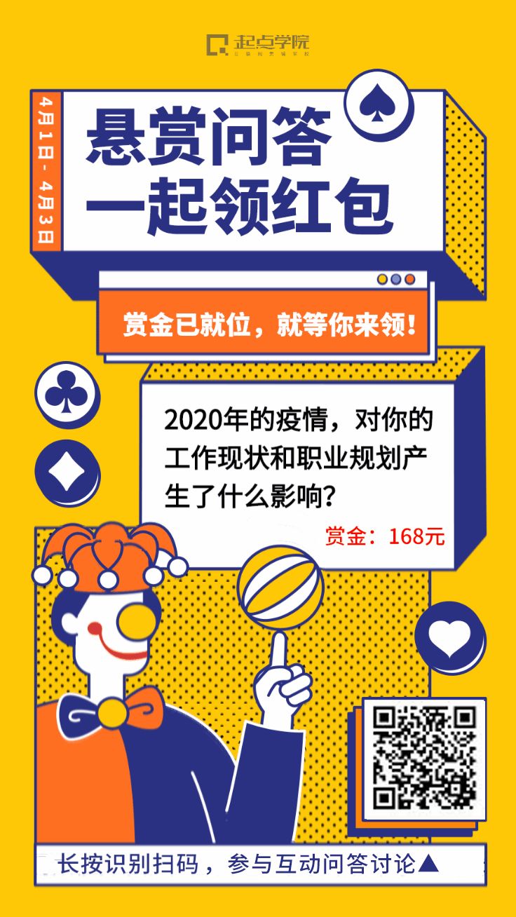 扫码福利:参与回答,将有机会瓜分168元随机悬赏红包!更有机会参与4月1日-3日【充电提升季:打怪升级,不做职场愚人】活动优惠福利!