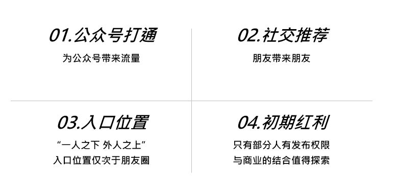 现在可以链接到公众号,未来与小程序、微信支付链接的可能性几乎是官宣了,对于个体创作者和企业想象力很大。