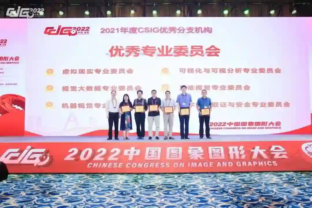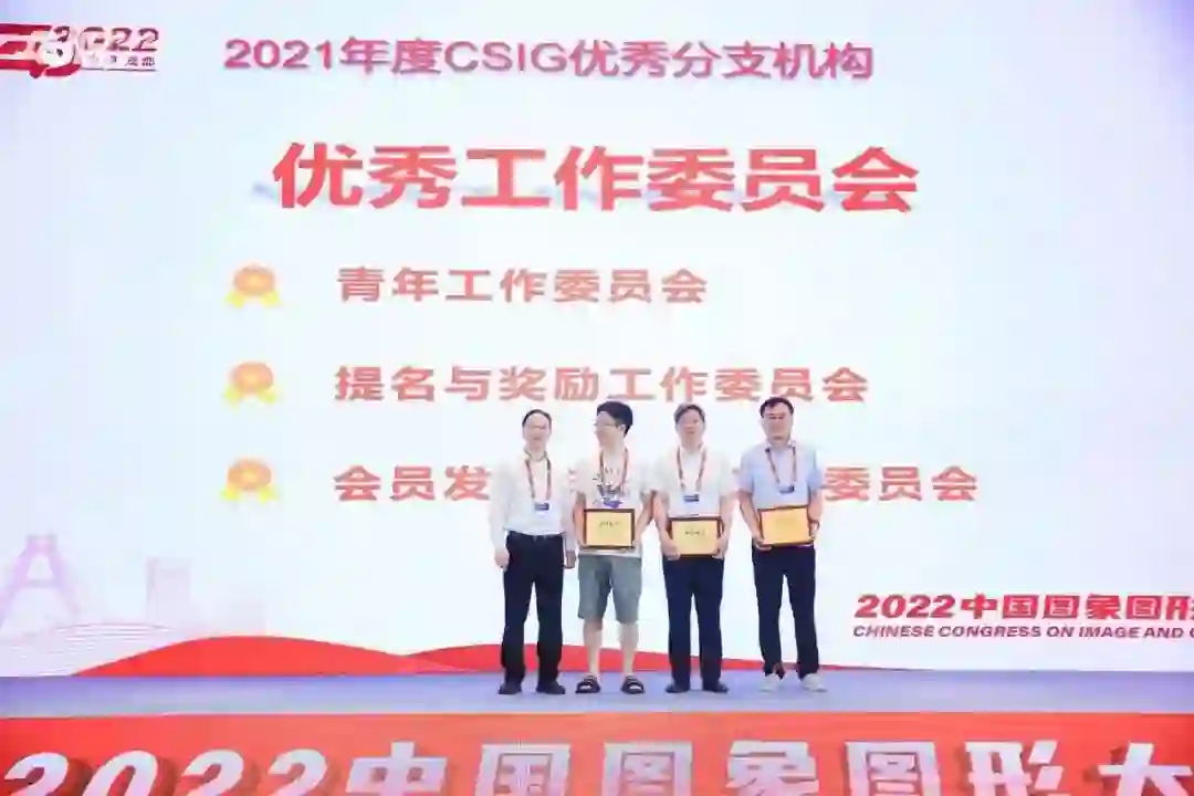 2021年度CSIG优秀分支机构由大会主席王耀南院士颁发。其中,虚拟现实专业委员会、视觉大数据专业委员会、机器视觉专业委员会、可视化与可视分析专业委员会、三维视觉专业委员会、数字媒体取证与安全专业委员会获优秀专业委员会;青年工作委员会、提名与奖励工作委员会、会员发展与服务工作委员会获优秀工作委员会。