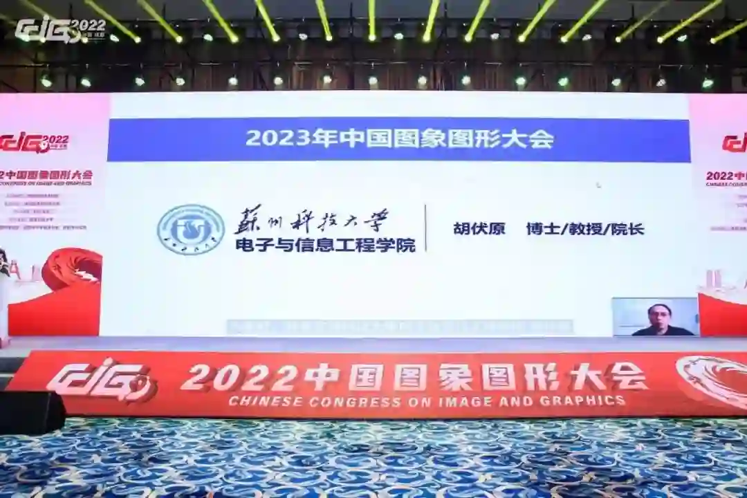 颁奖典礼的最后,苏州科技大学电子与信息工程学院院长胡伏原致辞,介绍了苏州科技大学的现状与苏州的自然人文风貌,并以CCIG2023承办单位的名义,诚挚地向与会嘉宾发出邀请。