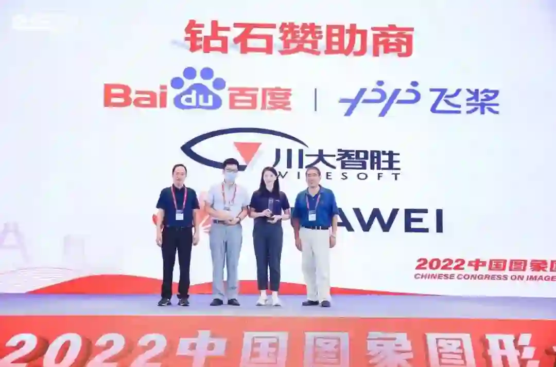 会议赞助方感谢牌由大会程序主席刘怡光教授、陈华富教授颁发,获奖单位有单项赞助商清德智体科技有限公司、银牌赞助商合合科技股份有限公司、银牌赞助商金山办公软件有限公司、银牌赞助商极视角科技有限公司、金牌赞助商360人工智能研究院、铂金赞助商中科亿海微电子科技有限公司、铂金赞助商OPPO广东移动通信有限公司、钻石赞助商百度飞桨、钻石赞助商四川川大智胜软件股份有限公司以及钻石赞助商华为技术有限公司。
