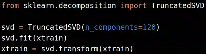 一般对TF-IDF有效的奇异值分解成分(components)是120-200个。更多的数量可能效果会有所改进但不是很明显,而计算机资源耗费却很多。