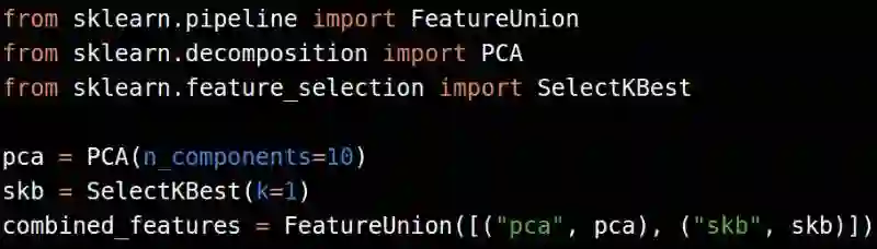 也可以通过FeatureUnion模块实现,以防万一有其他处理步骤,如PCA或特征选择(我们将在后文提到分解和特征选择)。