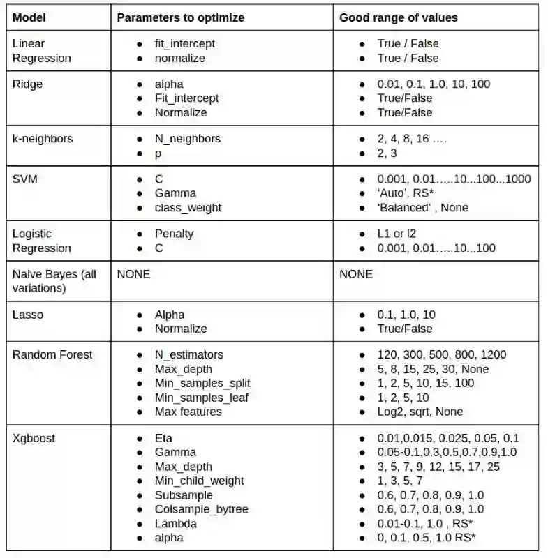 我需要优化哪个参数?如何选择最好的参数?这些是人们经常会遇到的问题。没有大量数据集上不同模型+参数的经验,无法得到这些问题的答案。有经验的人又不愿意把他们的秘诀公之于众。幸运的是,我有丰富的经验,同时愿意分享。让我们来看看不同模型下超参数的秘密: