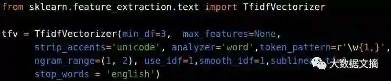 然后就可以应用CoutVectorizer或者TfidfVectorizer在上面啦: