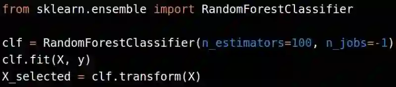 其他更快的特征选择方法包括从一个模型中选取最好的特征。我们可以根据一个逻辑回归模型的系数,或者训练一个随机森林来选择最好的特征,然后把它们用在其它的机器学习模型里。