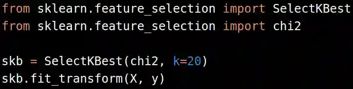 这里,我们用卡方联合SelectKBest的方法从数据中选择了20个特征。这个本身也是我们改进机器学习模型的超参数之一。