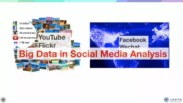 对社交媒体中的大数据进行分析,其数据来源分为两个部分,一是YouTube,Flicker和Instagram上的图像视频数据,二是Facebook,Wechat,Google+上的用户关系数据。这二者都属于社交媒体分析中的大数据,是我研究的主要topic。
