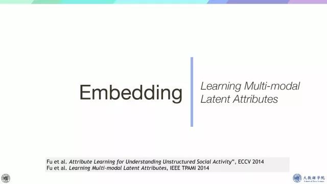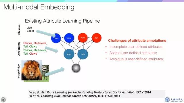 回顾一下属性学习,从浅层特征到属性,再到类别,这里的关键是属性,但是属性一般较依赖于人工的标注,对属性的定义常常有很多挑战,比如不完整、稀疏或者比较模糊,这就依赖从数据中挖掘属性。