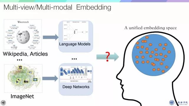 下面说一下其他的工作embedding,再从实际来看,人类摄入很多文章和照片,对于文章和图片都可以训练很好的深度学习模型,那么人脑会不会形成统一的embedding space呢?假设这个观点是成立的,那么研究出发点就是如何做mutli-view/multi-modal embedding。
