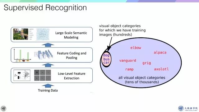 Attribute learning识别的未知类别数量一般并不大,可以把这类思想推广到open-set recognition,open-set recognition就是从大量图片词汇类别中识别图像视频的语义标签。