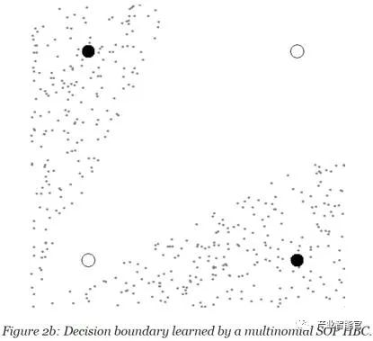 事实证明,如果使用第一个方程。则HBC简化为Naive Bayes分类器。这样的HBC只能学习线性(或二次)的决策处理。