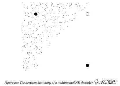 如果您通过上图中的数据训练多项式Naive Bayes分类器,则会得到下图。