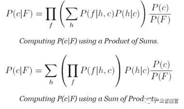 第一个等式使用和(POS)的乘积来计算P(c | F)的值。第二个等式使用产品和(SOP)来计算P(c | F)的值。
