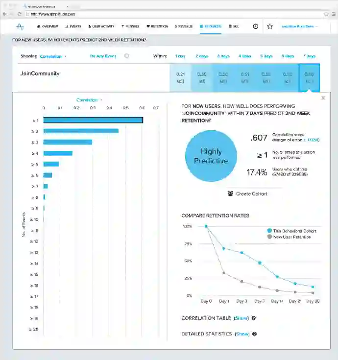 Amplitude有助于回答所有用户的行为问题。产品分析显示了你的用户是谁,他们想要什么。Amplitude显示微观数据,所以你可以放大到任何数据点,同时还可以访问所有原始SQL数据。