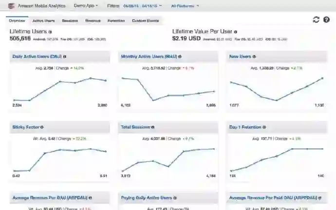 AWS允许你衡量应用程序的使用收入。你还可以跟踪关键趋势、用户保留信息和应用程序内的行为事件。通过亚马逊的精确定位,你可以使用程序分析来开展有针对性的活动,以驱动用户的参与。