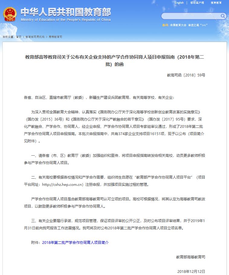 产学合作,才能更好助力高校转型,“产学合作协同育人” 项目由教育部高等教育司面向企业征集,由企业提供经费支持,更多高校参与项目合作,以产业和技术发展的新需求推动高校人才培养改革,促进高校人才培养与企业发展的合作共赢。