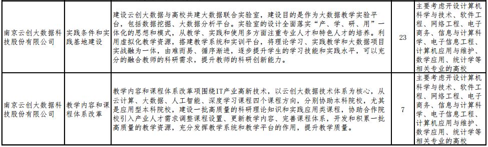 2018年12月12日,通过教高司函〔2018〕59号,教育部高等教育司公布了有关企业支持的“产学合作协同育人项目申报指南”(2018年第二批),云创大数据共有30个产学合作项目获批,包括“实践条件和实践基地建设”与“教学内容和课程体系改革”两个类别,专业方向涵盖物联网、大数据、云计算、移动互联、网络工程等方面。