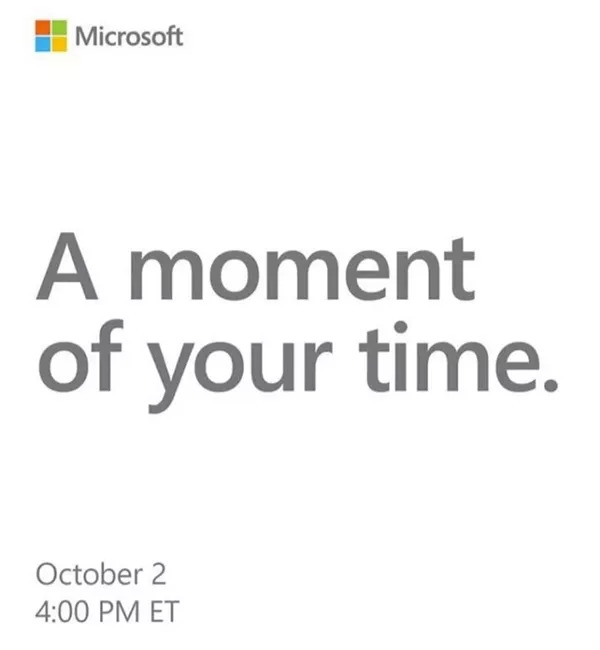 在谷歌发布邀请函后,微软也在日前发布了其发布会邀请函,表示将于10月2日在纽约举行新品发布会。