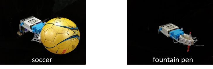 。从中可以看到,即使是在抓取4mm小的物体时,物体能够承受的竖直力和侧向力都分别能都达到8~10N,这体现了半包裹抓取模式的稳定性。